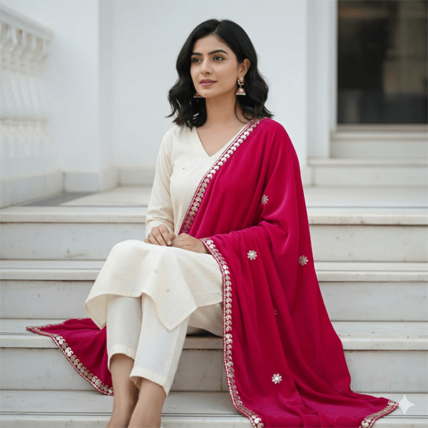 Maroon Colour ARIPAN Velvet gotapatti embroidery design traditional classy ethnic wear dupatta chunni for women and girls