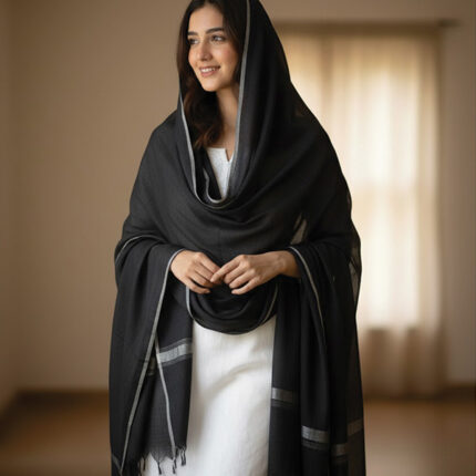 Black Linen Cotton Pure Quality Plain Trendy Fancy Summer Special Dupatta for Women and Girls – Full Length 2.30m (Pack of 1)