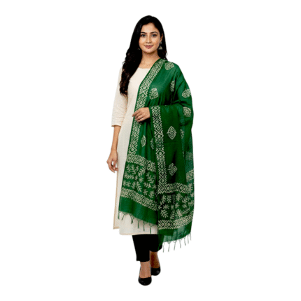 Green Batik Print Linen Cotton Regular Wear Dupatta Full Casual Daily Use Chunni For Women and Girls Length 2.25m Width 70cm