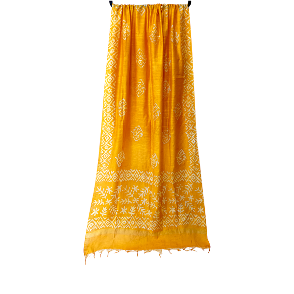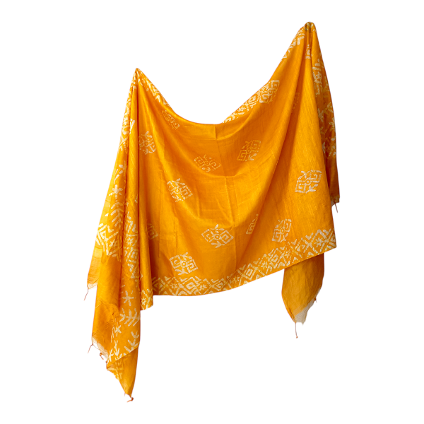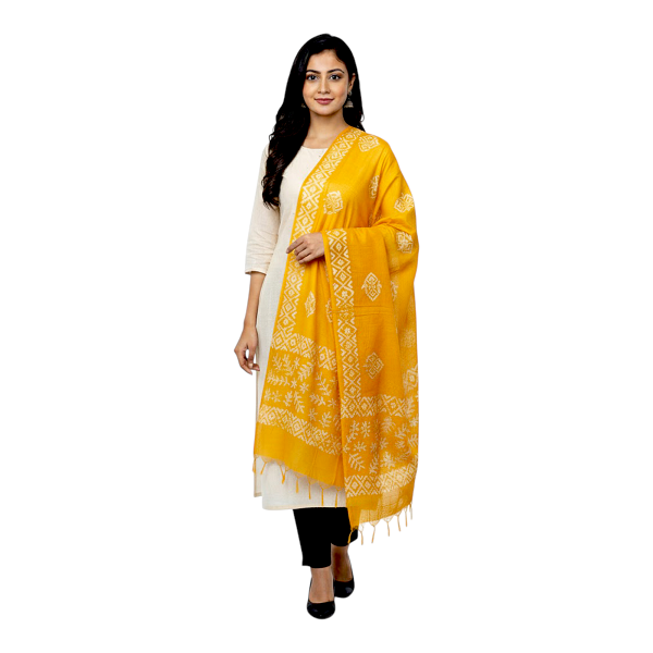 Home Dupatta Yellow Batik Print Linen Cotton Regular Wear Dupatta Full Casual Daily Use Chunni For Women and Girls Length 2.25m Width 70cm